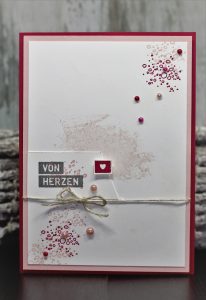 Es gibt von Stampin‘ Up! diverses Zubehör in sämtlichen Farben abgestimmt auf die angebotenen Produkte! Das ist klasse aber manchmal fehlt dennoch das richtige Akzent um der Karte den letzten „Schliff“ zu geben. Manchmal möchte man auch einfach gleich weitermachen und nicht auf die nächste Bestellung warten müssen 😉
