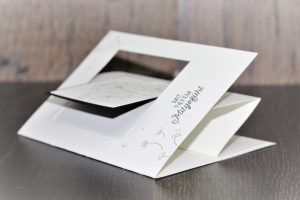 Die Karte hat einen besonderen Wow-Effekt, da nach dem Öffnen das Fenster nach innen klappt und somit auch innen sichtbar wird! Ich liebe einfach Karten, die zügig von der Hand gehen und dann auch noch so viel her machen! 🙂