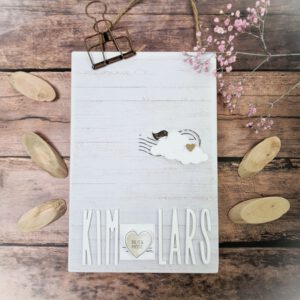 Die Klammer ist von 49 and market – sie passt durch ihren rustikalen Look total zu dieser Homedeko. An der Klammer kann ein Erinnerungsstück – ein Bild der Hochzeit oder zu jedem Hochzeitstag die jeweilige Zahl gehängt werden. Man könnte sogar einen Stapel Jahreszahl-Karten mit verschenken. Eine schöne Idee und vor allem eine wundervolle Erinnerung an einen sehr besonderen Tag 🙂